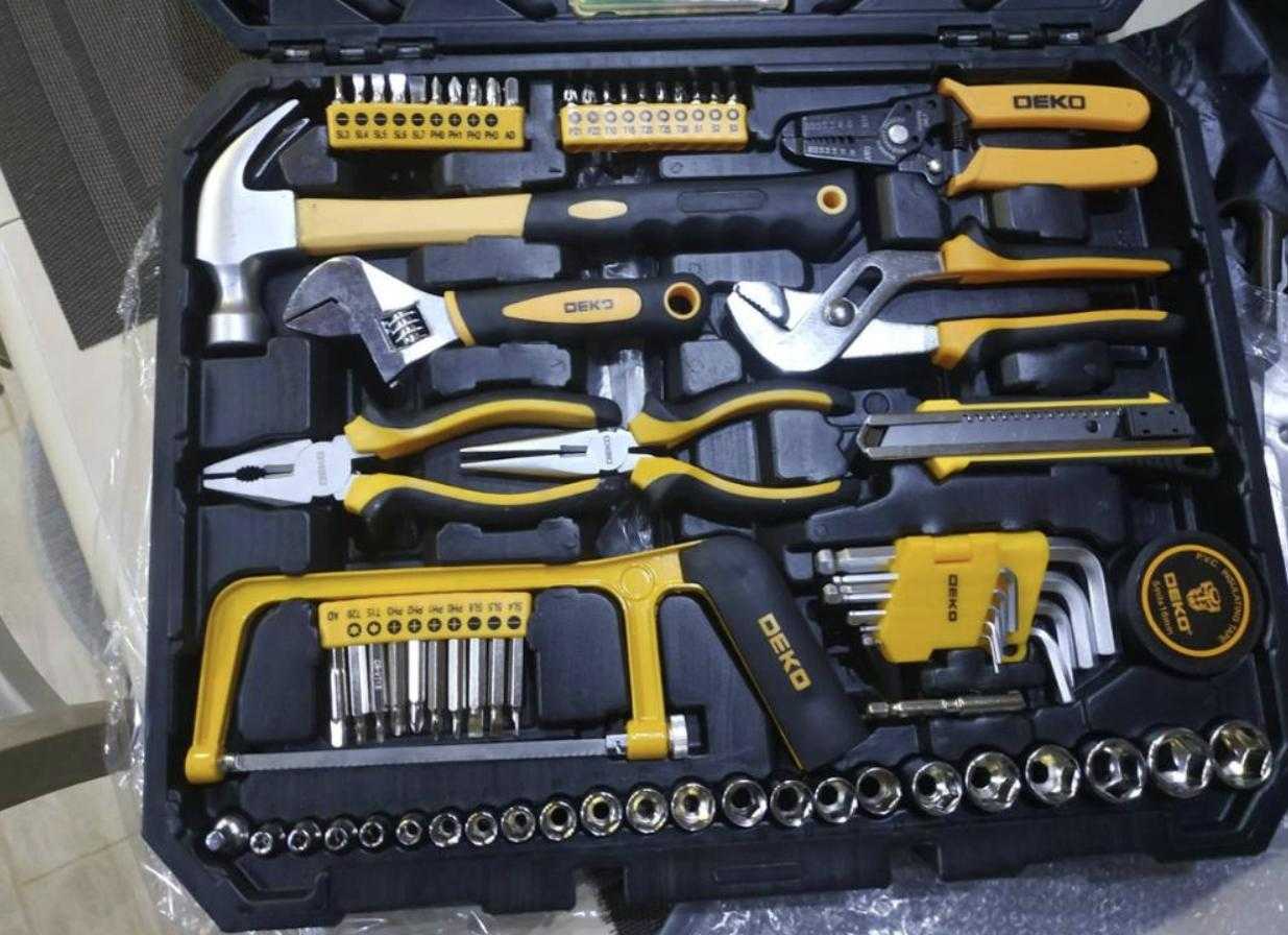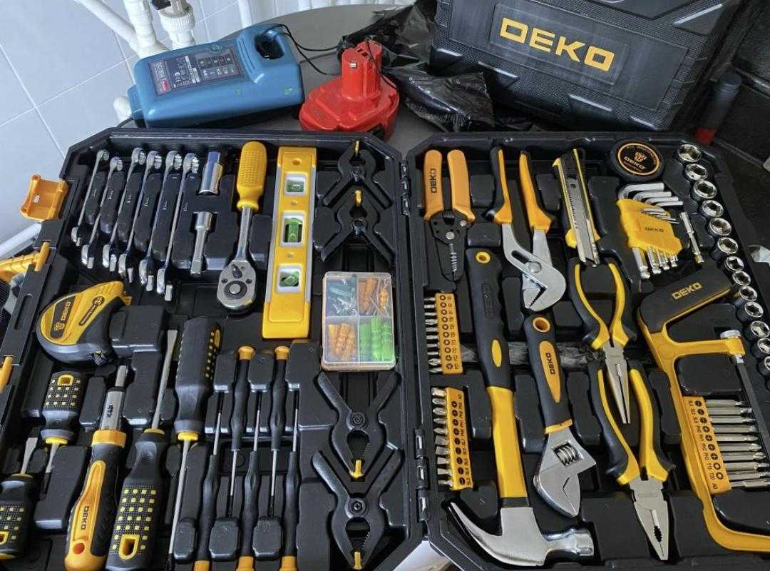 По результатам отзывов в интернете я остановился на наборе инструментов DEKO. Для домашних работ он идеально подошёл мне по бюджету и соразмерному качеству.