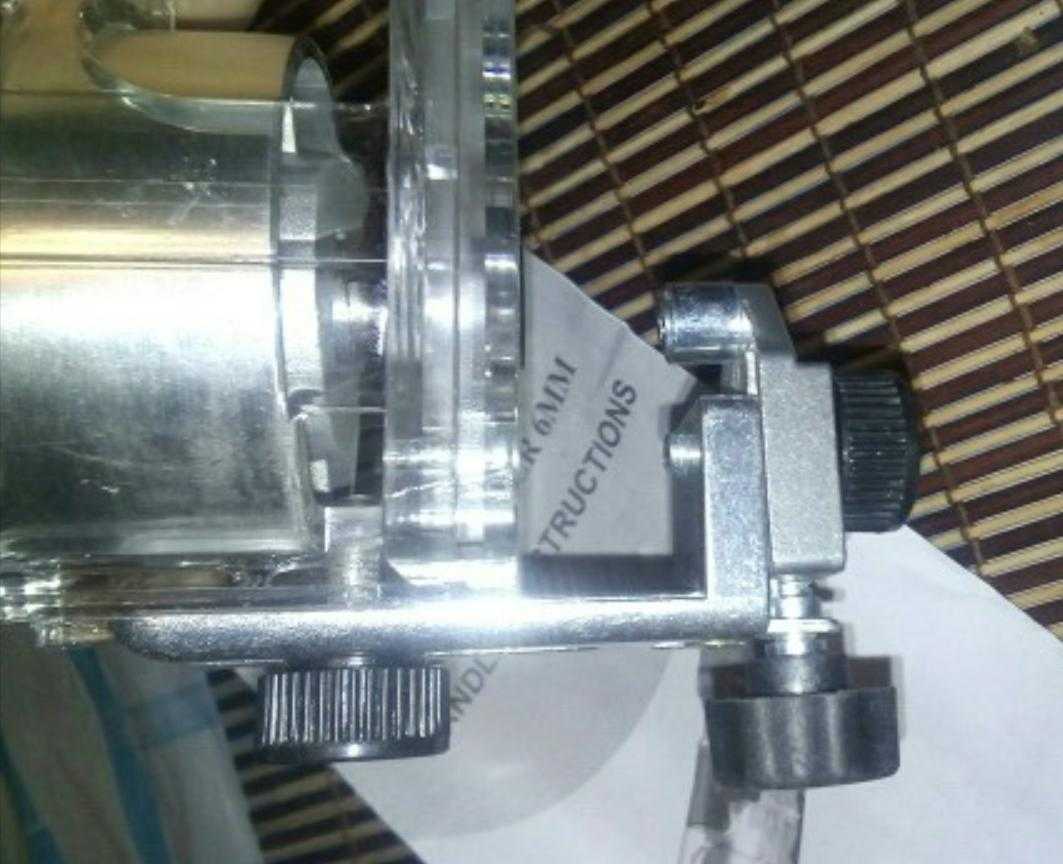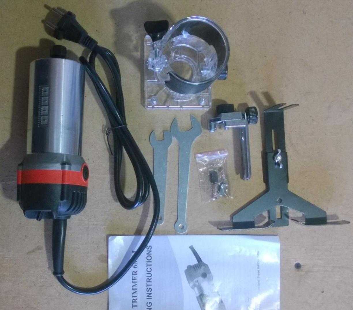 В комплекте, кроме машинки, есть ключи для установки фрез, четыре приспособления для точных фрезерных работ. Все это пригодится мастеру в столярном цеху или мастерской дома.