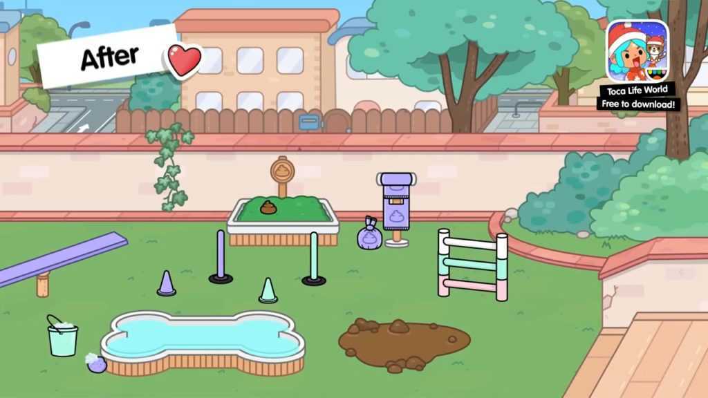 Создатели игры в этот раз позаботились о выгуле и развлечениях домашних любимцев. Во дворе можно заметить свой сад и место для игровой площадки, которую можно создавать по своему вкусу и усмотрению. В новом паке мы сможем воспользоваться такими предметами, как: