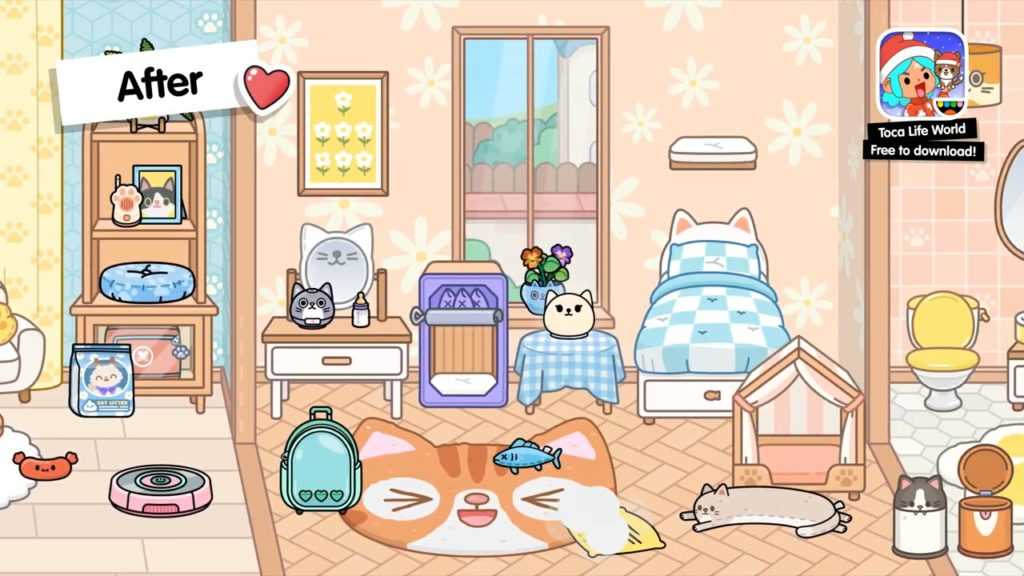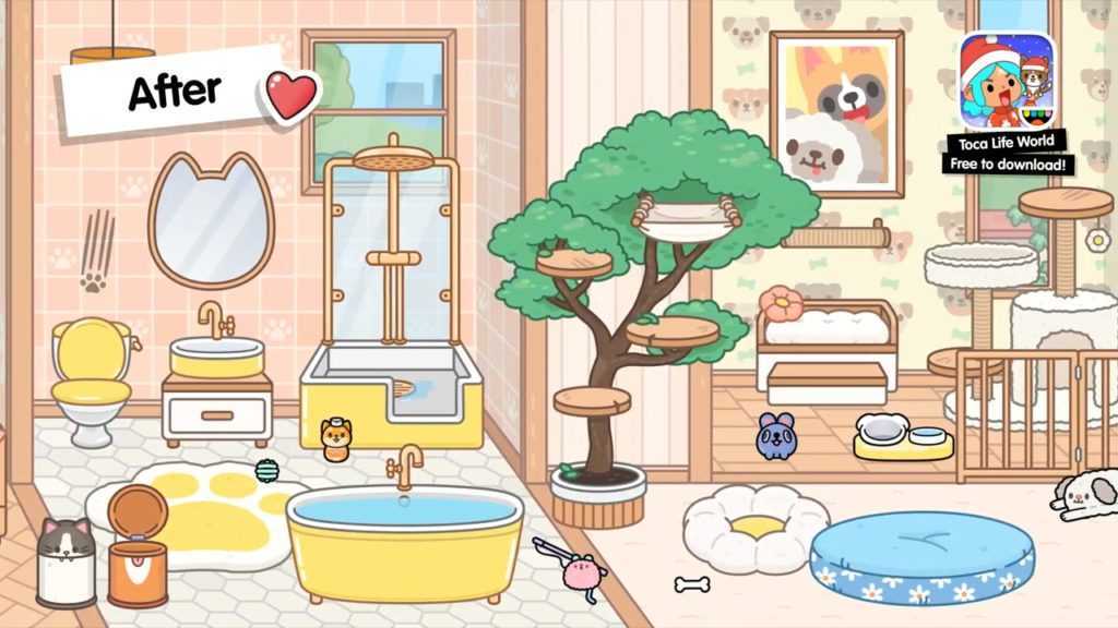 В небольшой второй комнатке можно обустроить спальню. Для этого развлечения мы получим новую кровать с ушками на спинке, коврик в виде кошечки, миленькие лежанки и домики, навесную полочку с подушкой и желтые шторы с узором лапок. Также разработчики не позабывали о новом столике с зеркалом, светильники и игрушки.