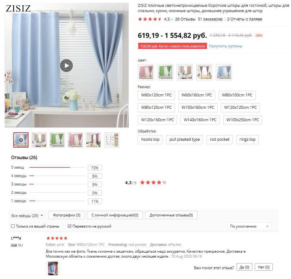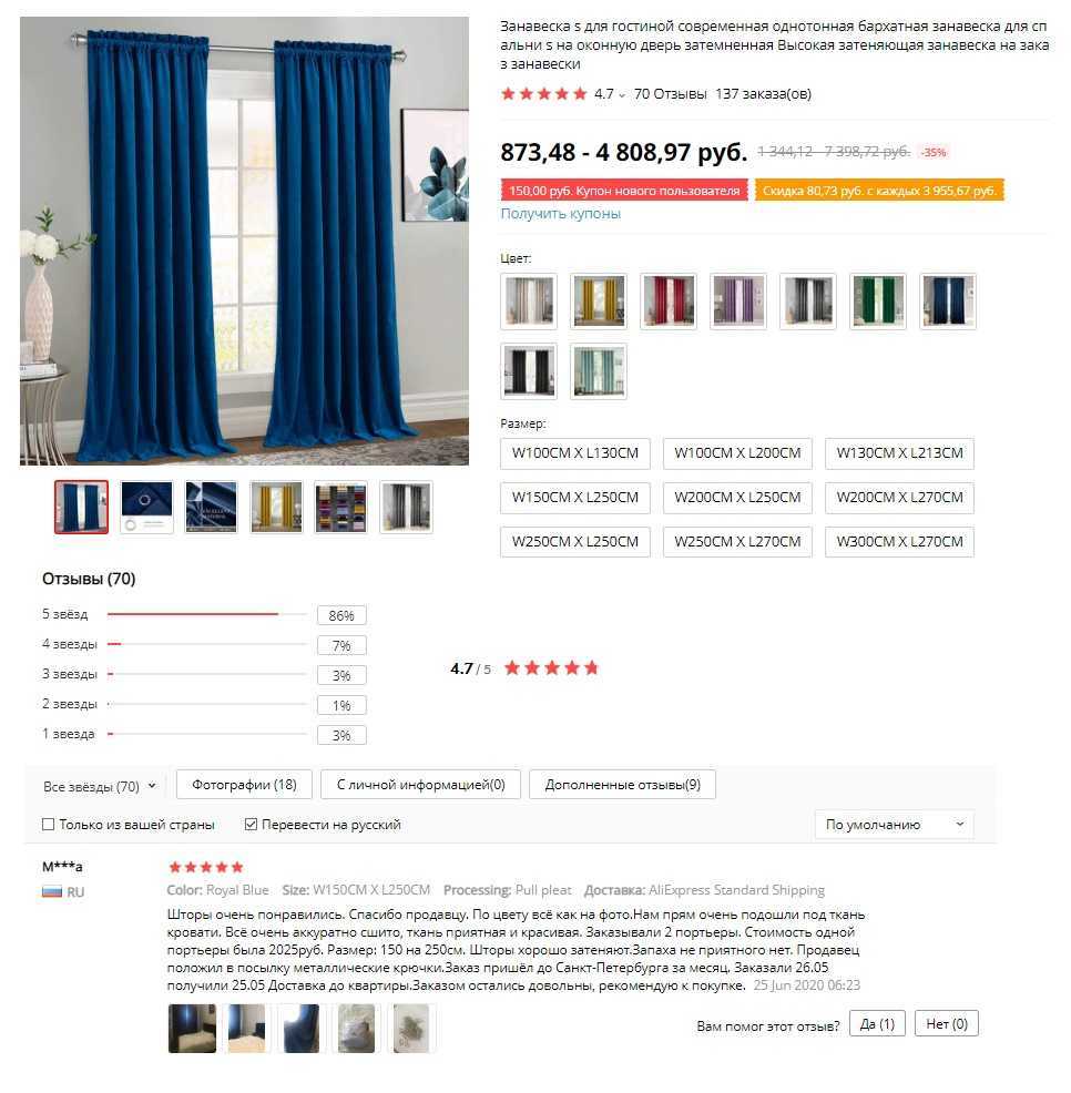 Доставка по России бесплатная. Сами шторы сделаны из светонепроницаемого качественного материала, размеры всегда соответствуют, покрой аккуратный, не включает в себя никакие дефекты. Мнение пользователей совпадает, но все указывают то, что держатели приходиться покупать отдельно, а также нужно тщательно высматривать размер.