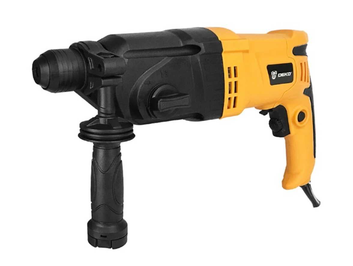 Ищете мощный, но лёгкий перфоратор? Тогда предлагаю ознакомиться с моделью DEKO GJ180. При мощности в 800 Вт инструмент весит всего 5 килограмм. У него неплохая энергия удара в 2,4 джоуля, поэтому им можно делать достаточно крупные отверстия. Для удобства предусмотрена отдельная ручка: это позволяет долго не уставать во время выполнения работ.