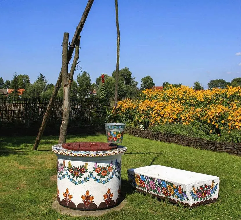 Прекрасным обрамлением к такому колодцу будут пышные кустарники и различные декоративные фигуры или абстрактные формы, которые заставят фантазию ваших гостей, создавать самые невероятные, сказочные образы.