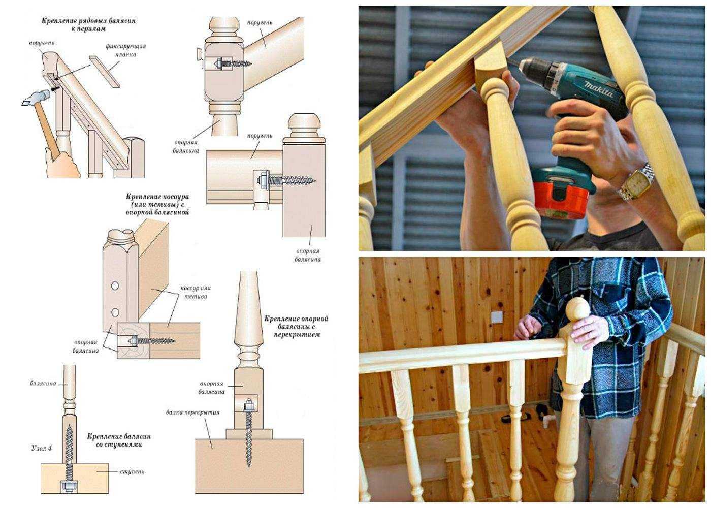 Монтаж деревянных ограждений для лестниц показан на этих фото: