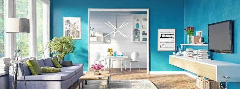 - Насыщенный голубой — наполняет пространство свежестью, делает комнату воздушной, и комфортной