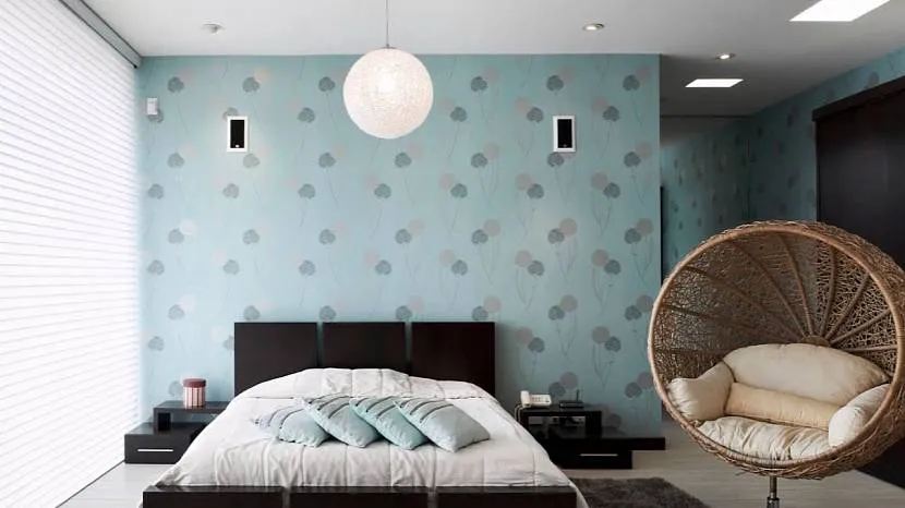 Если мебель в вашей спальне имеет светлые оттенки, можно поэкспериментировать и поклеить обои с темно-голубым фоном. Растительные, геометрические, классические и другие узоры на стенах в спальне помогут разбавить скучную обстановку и будут отражать определенный стиль: классику, прованс, кантри, хай-тек и другие направления.