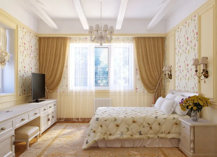 Как вы думаете, какие шторы подойдут к бежевым обоям в интерьере спальной комнаты? В этом пространстве недопустимо использование чрезмерно ярких акцентов, отвлекающих от сна. Поэтому специалисты рекомендуют использовать шторы и занавески, выполненные в нежных, пастельных тонах. На ткани могут присутствовать рисунки и узоры с броскими акцентами, но дополнительный оттенок не должен доминировать в зоне окна.