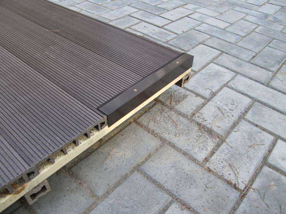 Настил материала зависит от его типа. Начнем с террасной плитки. Она укладывается предельно просто, не требует от человека профессиональных навыков и многолетнего опыта. В качестве основания может выступать бетонная поверхность, щебень, дощатый настил, плитка. На песчаную подушку настилать декинг не рекомендуется, потому как он будет прогибаться и играть. Сам материал не повредится, но дорожка окажется неустойчивой, что вызовет определенные неудобств при ходьбе.