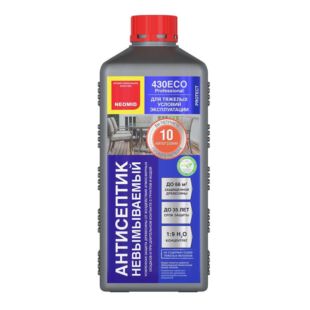 Пользователи довольны такими свойствами NEOMID 430 ЕСО, как длительный срок защиты, экологичность, широкая сфера применения. К минусам следует отнести окрашивание дерева в зеленовато-серый цвет, наличие специфического запаха. Поэтому 4 позиция рейтинга.