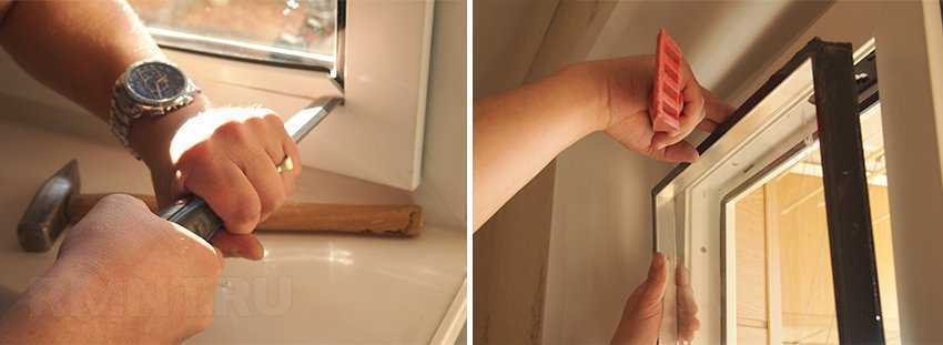 Аккуратно с окна вынимаются все штапики, и также аккуратно вынимается разбитый или треснувший стеклопакет. Если геометрия стеклопакета нарушена, то на помощь придут рихтовочные пластины, которые устанавливаются под стеклопакет и помогут справиться с неровностями.
