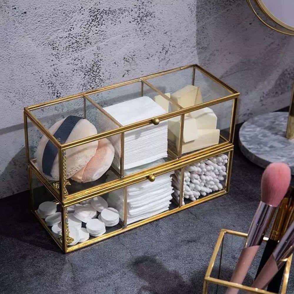 Сундучок для косметики имеет много места для хранения, что, безусловно, является его огромным достоинством. Продукт доступен в оригинальном золотом цвете, который пользуется сейчас огромной популярностью. В сундучке, вы можете хранить все свои косметические принадлежности.