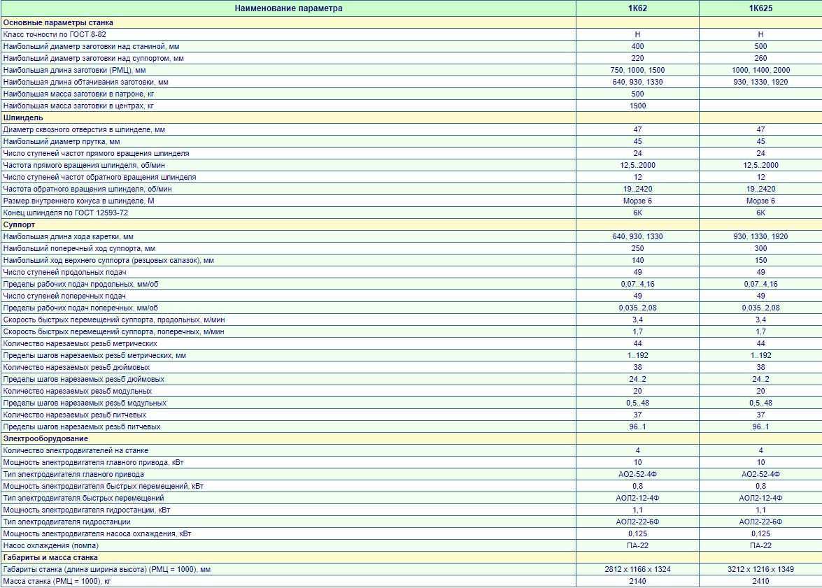 - Пределы шагов нарезаемых резьбы метрических, мм: 1..192.