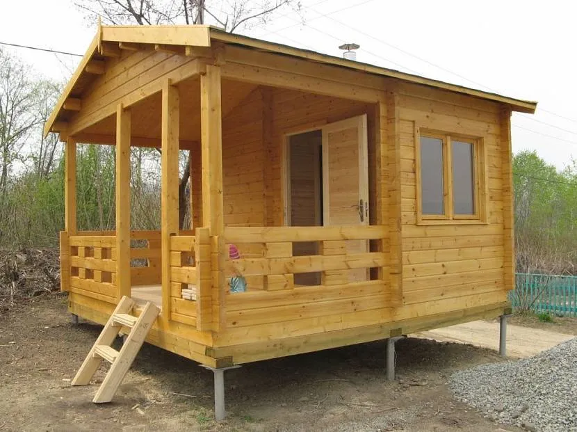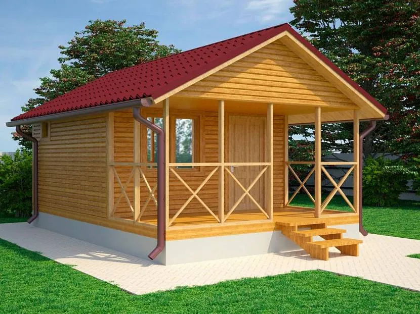 Каркасная баня с верандой (сборно-щитовая) – бюджетный вариант для ограниченного пространства, который не требует фундамента и значительного времени на возведениеИсточник domodel.org