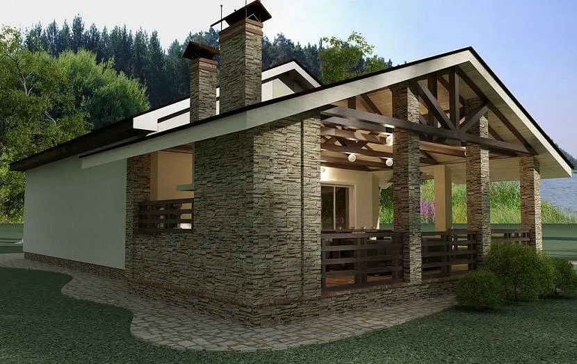Одноэтажная баня с барбекюИсточник viq.lebucos.ru.net
