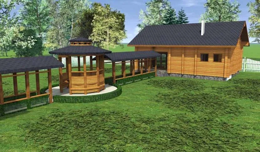 Даже достаточно удаленные друг от друга строения можно соединить переходом с беседкойИсточник yandex.ru