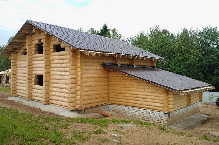 Важную роль играет подгонка венцов в кровельной системе. Если крыша пристройки будет в виде продолжения крыши основного здания, тогда придется поднять стены до уровня основного здания. Если у бани будет отдельная кровля, тогда нужно будет опустить стены строения на пару венцов ниже. Если же жесткой связи деревянной постройки с основным строением не будет, проще всего сделать отдельную крышу.