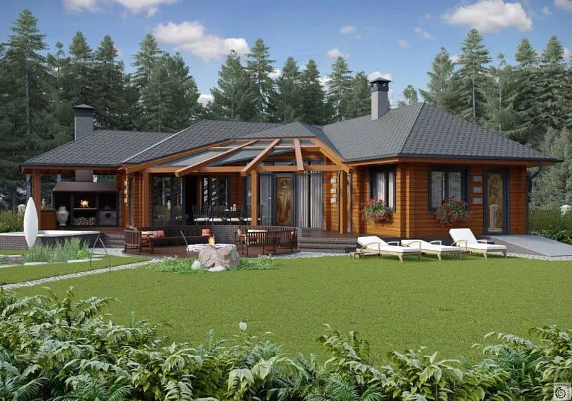 Подобный проект нацелен на создание максимального комфорта при кратковременном пребывании людей, а не при постоянном их проживании. Проще говоря, в этом случае создается место отдыха для семьи или компании друзей. Планировка подобных строений включает в себя: