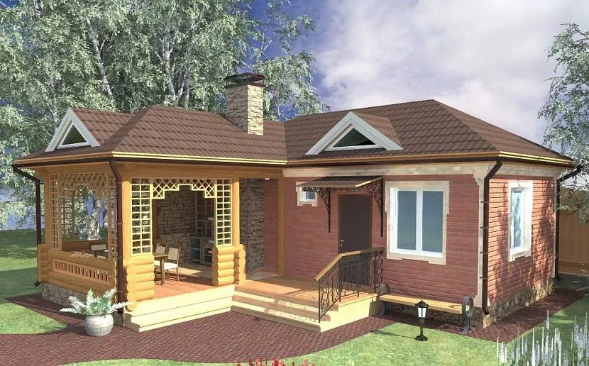 Проекты бань с террасой и барбекю: фото разных вариантов