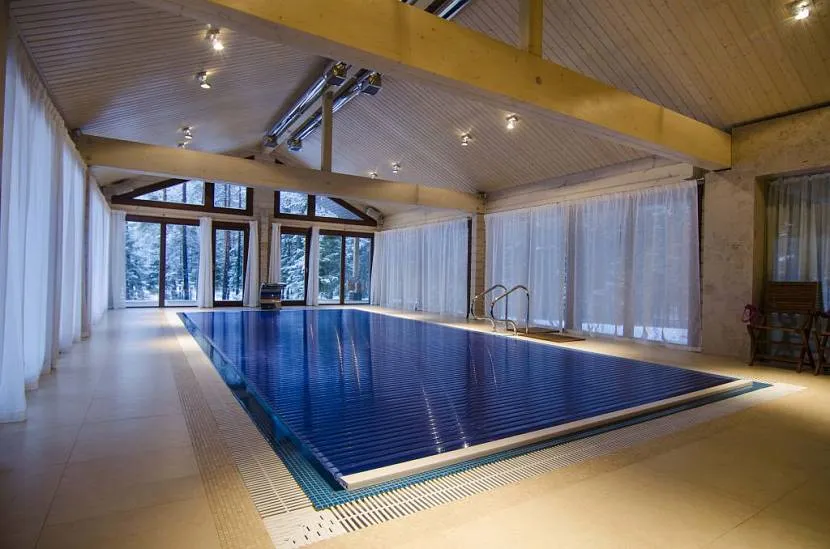 Если помещение бассейна оборудовать сдвигающейся крышей, в теплое время года можно совместить водные процедуры с воздушными ваннами.