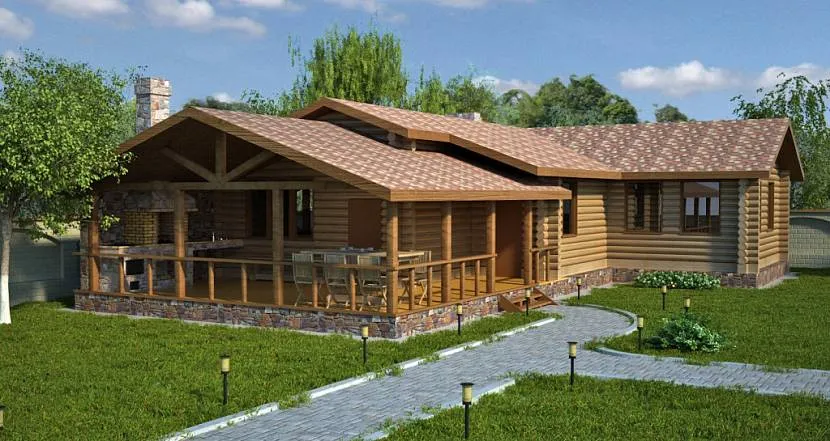 Гостевой дом с баней под одной крышей и верандойИсточник banyabest.ru