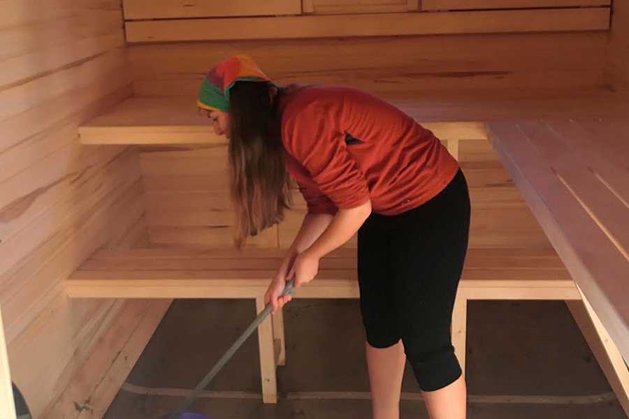 - влажную уборку пола, скамеек и полок;