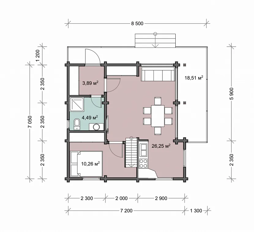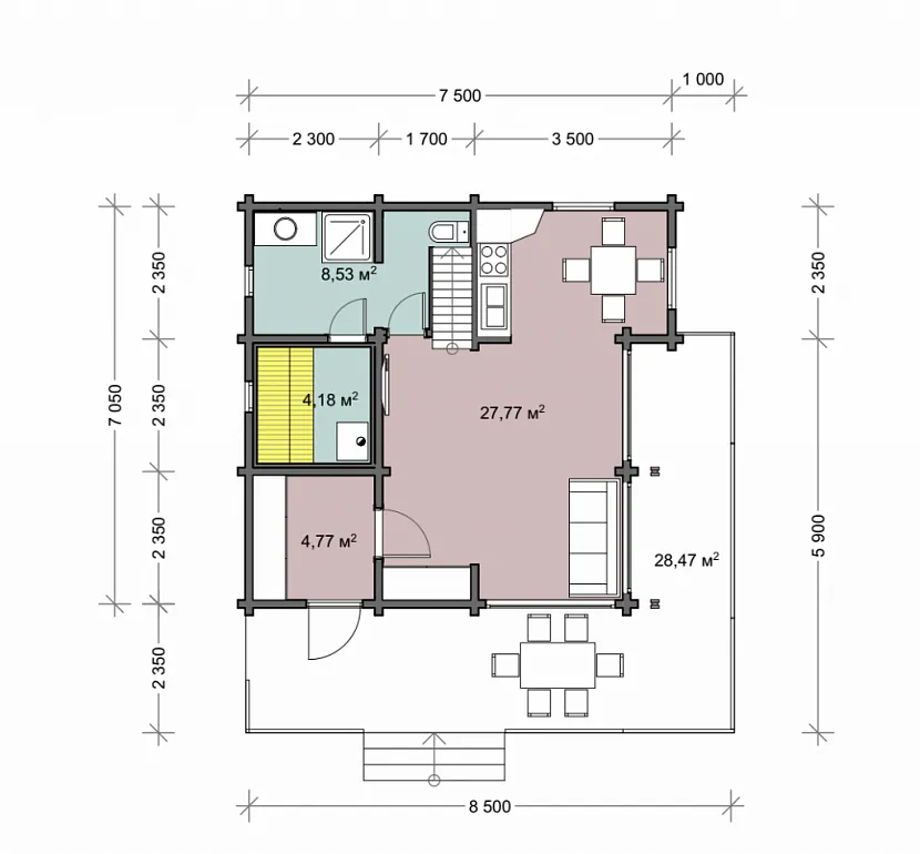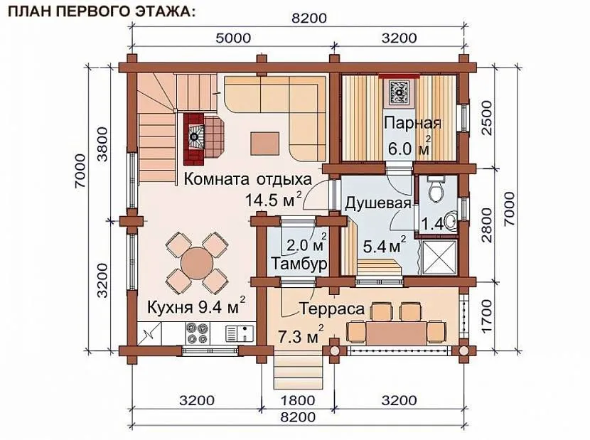 Дом баня 7х8,2 – первый этажИсточник urallesstroy.ru