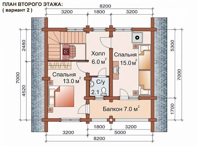 Дом баня 7х8,2 – второй этажИсточник my-banya.ru