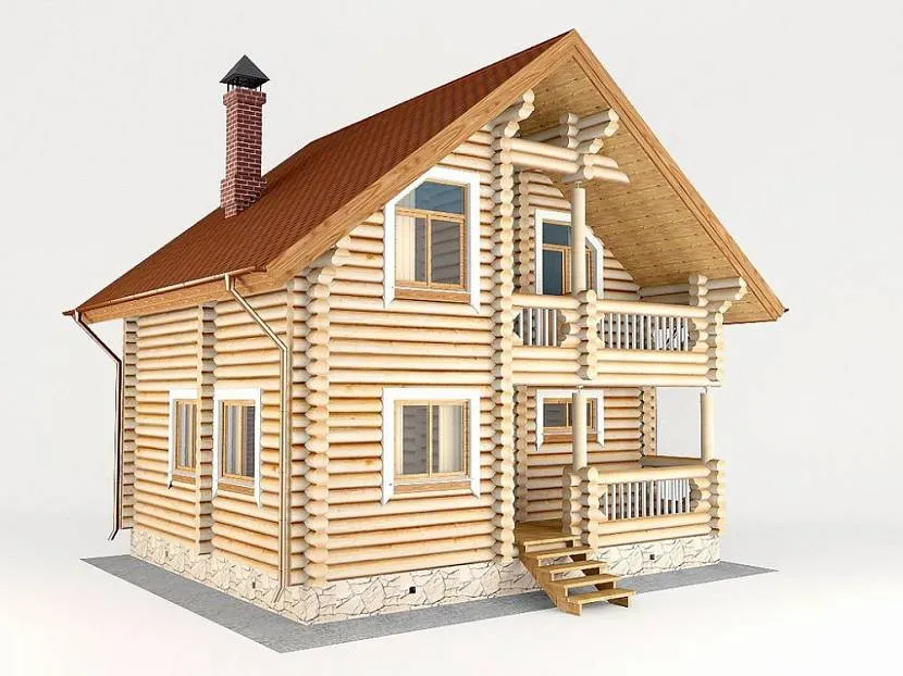 Двухэтажный дом с баней из оцилиндрованного бревнаИсточник dobrostroy25.ru