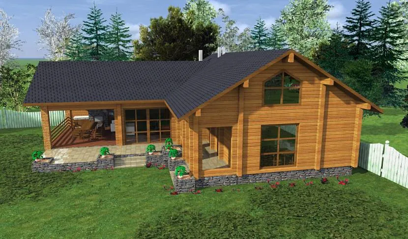 Zz2 L + pk — вариант проекта с плитами перекрытия и баней на первом этаже. Это удобно, когда в бане отдыхает не только семья, но и друзья или знакомые, а значит они не побеспокоят домашних на втором этаже в спальной зоне дома.