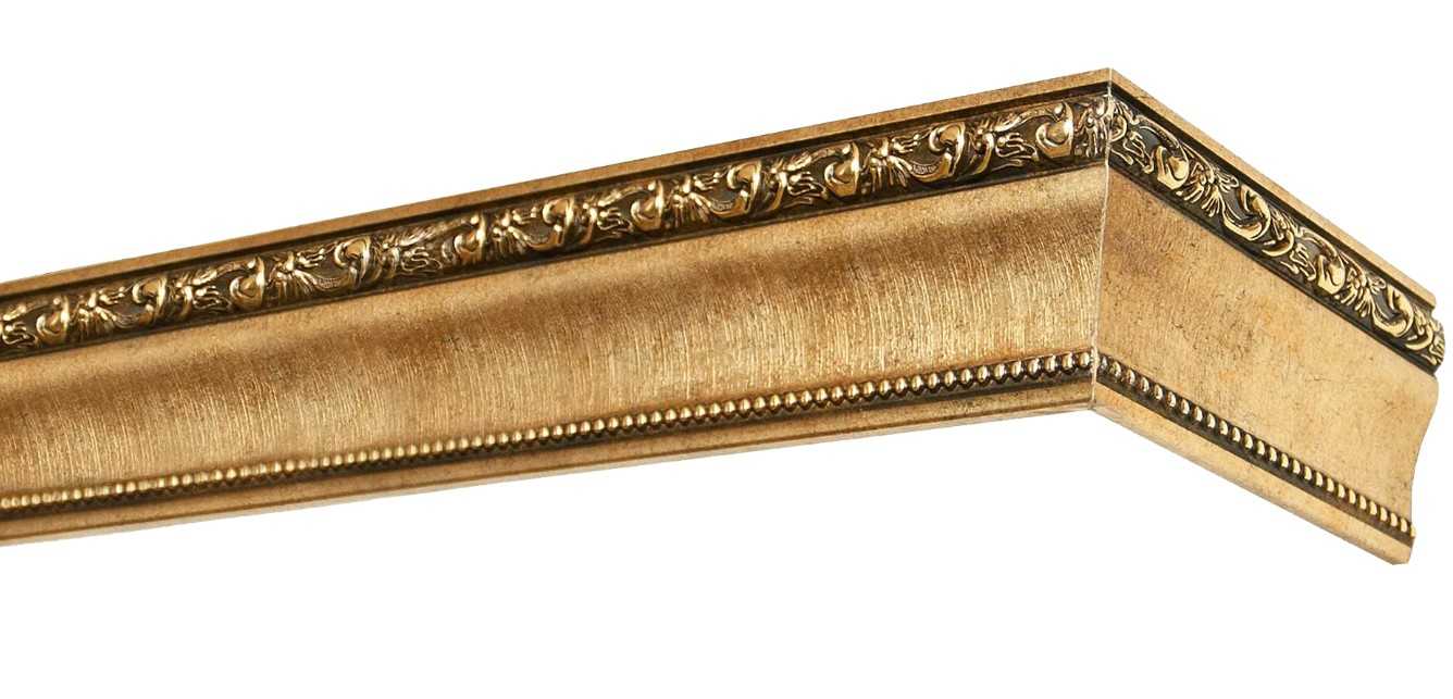 - Дерево. Чаще ценных пород. Чтобы придать нужный оттенок, багет окрашивают или тонируют. В последнем случае остаётся заметна структура волокон. Также используются методы декоративного окрашивания, например, брошюрование. Для защиты от внешних воздействий древесину покрывают лаком. Дополнительно деревянные багеты оформляют рельефным рисунком, украшают кристаллами «Swarovski» или декорируют алюминиевыми вставками. Дизайн может быть лаконичным или изысканным, с резными узорами в разных стилях.