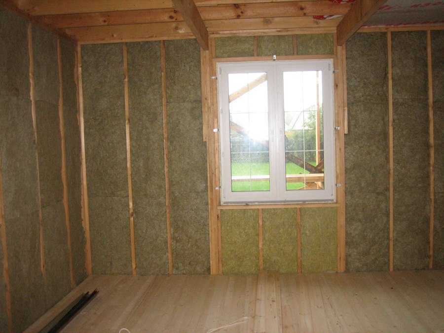 После обработки выполняется монтаж каркасной основы, для чего применяются деревянные бруски (подойдут размером 30х50 или 50х50). Они также должны быть обработаны антисептическими составами. Крепление брусков осуществляется к стропилам кровли с использованием саморезов или длинных гвоздей. Шаг крепления брусков – 30-40 см