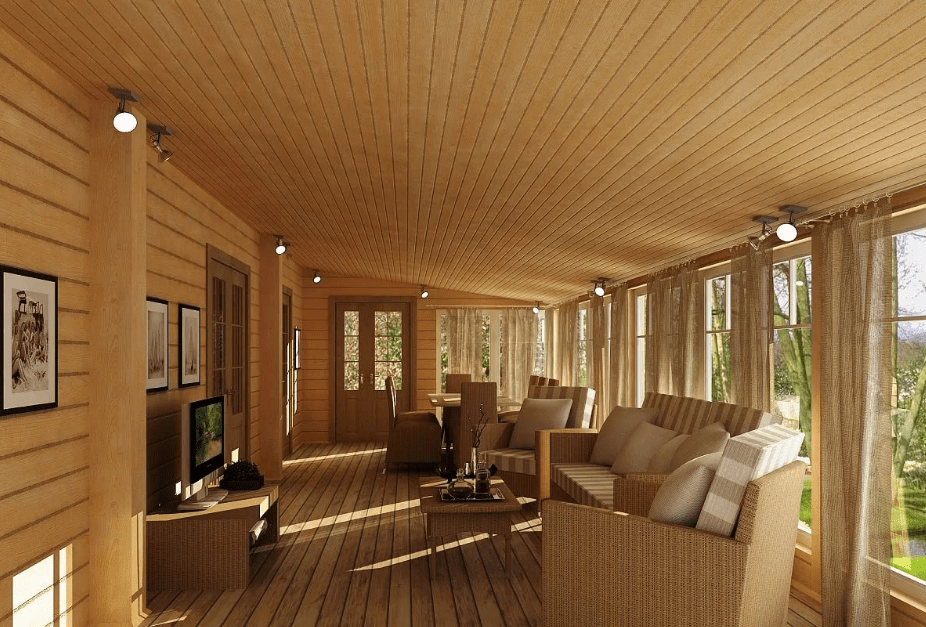 Отделка помещения веранды деревом