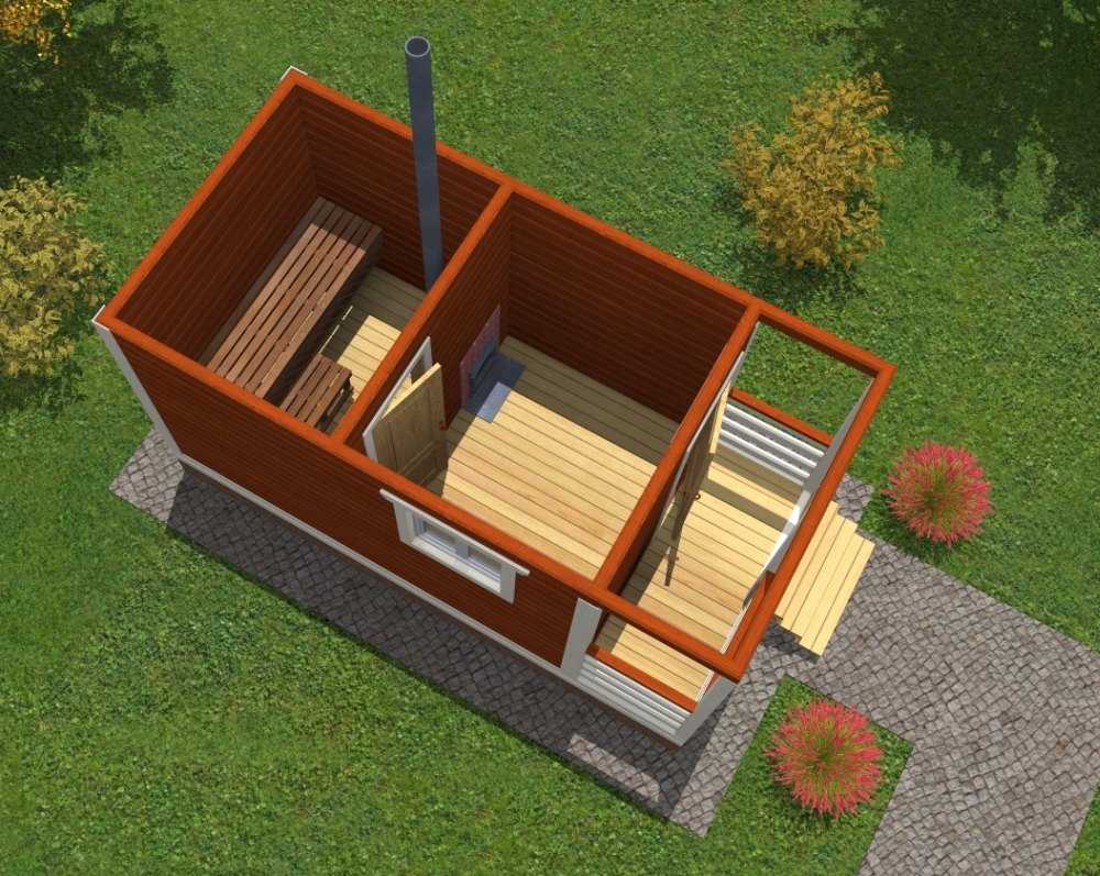 Проект маленькой каркасно-щитовой бани 4 на 3 м