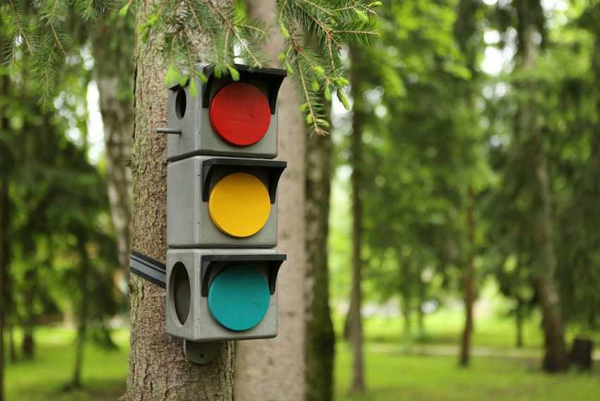 Три домика, расположенных один над другим в виде светофора