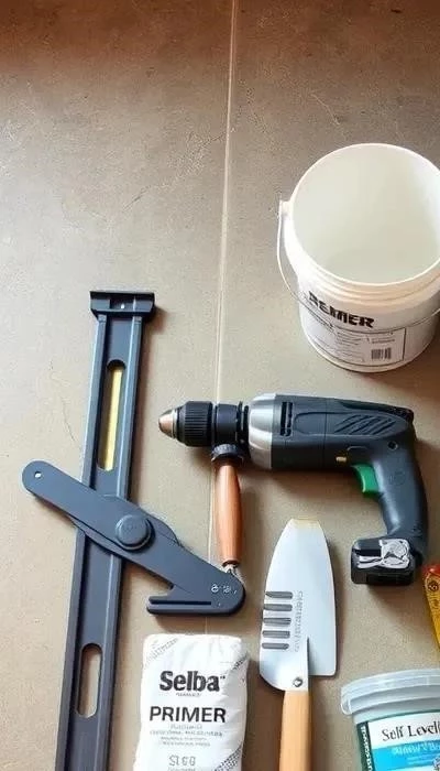 Для подготовки пола вам понадобятся: уровень, правило, шпатель, миксер для строительных смесей, ведро, кисть/валик, строительный пылесос. Материалы: грунтовка (расход 100-200 мл/м²), гидроизоляция (200-300 г/м²), клей для плитки (5-7 кг/м²).