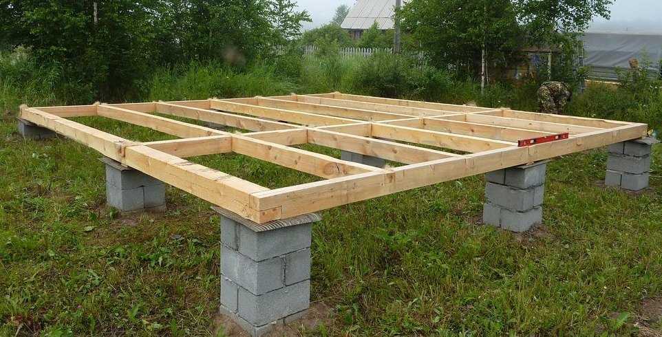 Благодаря тому, что такая постройка имеет небольшой вес, основу можно строить по упрощенной схеме. Вполне приемлемый вариант – столбчатая основа с содержанием асбестоцементных труб залитых бетоном.