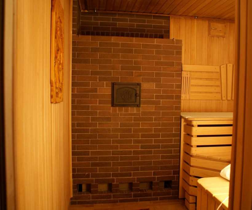 - Хорошее сохранение тепла в парилке, особенно, при применении огнеупорного кирпича.