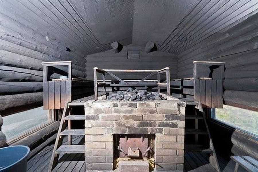 Чёрные печки в принципе не имеют дымохода, и дым здесь выходит наружу из помещения через дверь. Они считаются самыми древними и существуют на свете уже не одно столетие. Их плюс – возможность получить большое количество пара при малом количестве топлива. К недостаткам же можно отнести необходимость ожидания полного прогорания топлива в топке.