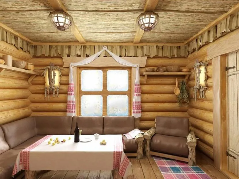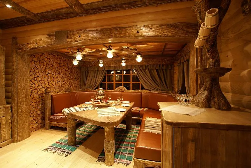 Оформление русской бани под старинуИсточник happymodern.ru