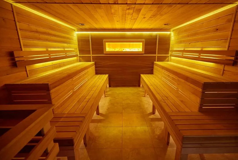 Гостиная в бане может рассматриваться как гостевая спальня, если она оборудована полными кроватями и оборудована постельными принадлежностями, тапочками и халатами.