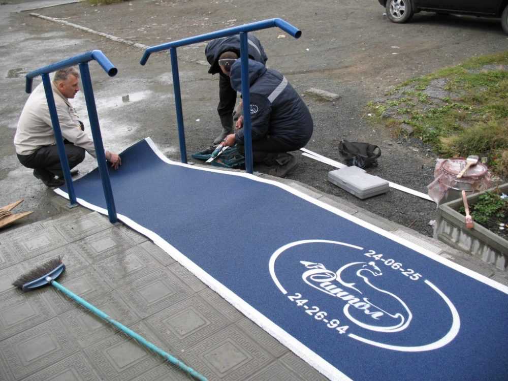 - Безопасное использование пандусов предполагает специальное покрытие для предотвращения скольжения, например, резиновое. На открытых пространствах устанавливают конструкции с рефренной поверхностью. Такое решение значительно облегчает процесс спуска и подъема человека в инвалидной коляске.