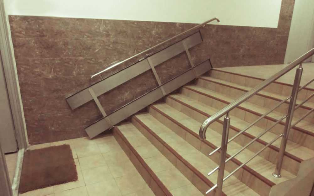 Непосредственно складные аппарели, раскладываются как книжка. За счет материала, из которого они изготовлены, они не тяжелые и могут так же, как и телескопические, храниться в квартире и использоваться непосредственно по назначению в то время, когда этого требует ситуация. В особенности на коротких и крутых лестничных маршах.