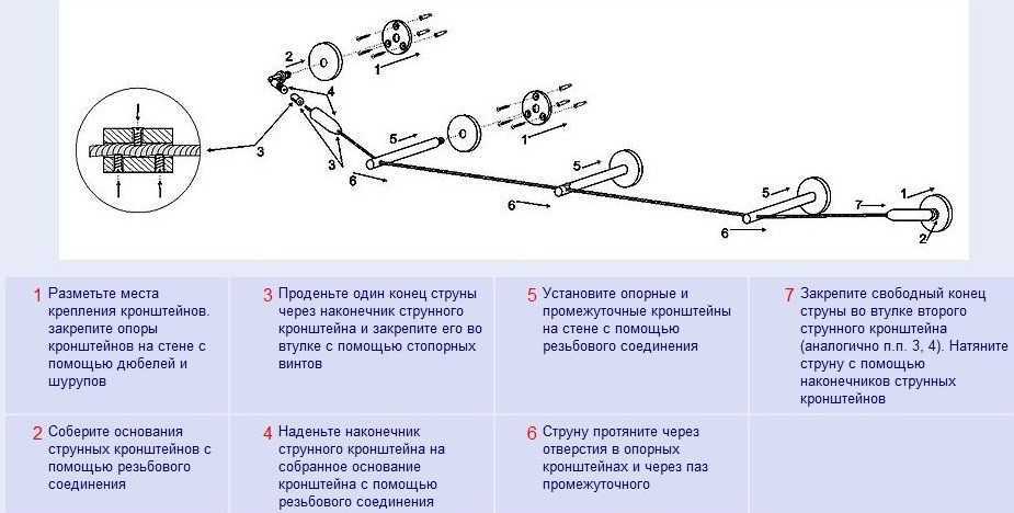 Последовательность, как правильно вешать карниз струнного типа