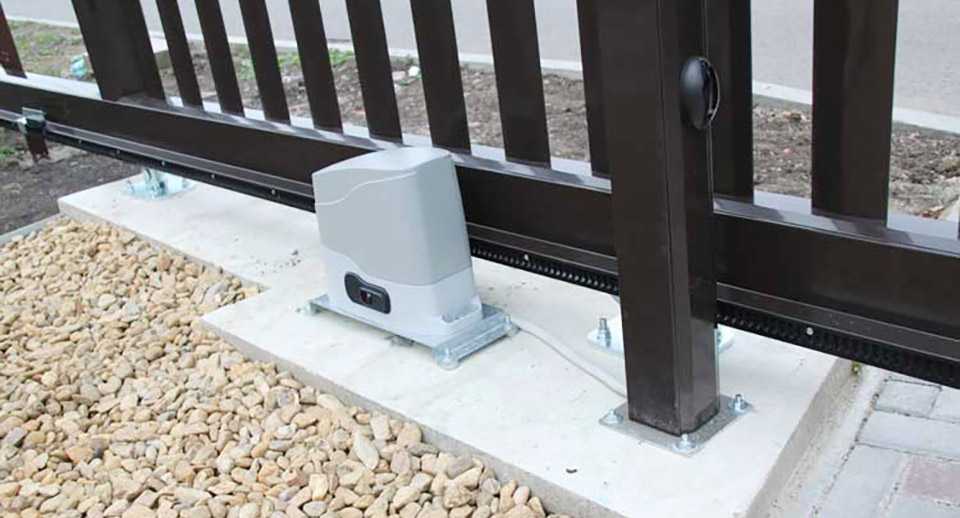 Основание целесообразно укладывать под все стойки ворот, поскольку малейший перекос конструкции приведет к увеличению нагрузки на комплектующие въезда и быстрому выходу из строя. Под роликовые тележки предусматривают железобетонное основание с широким металлическим швеллером. Его также удобно использовать под крепление электропривода. Выбор автоматики выполняется в зависимости от конструкции откатных ворот. Множество примеров можно найти в интернете, задав соответствующий запрос.