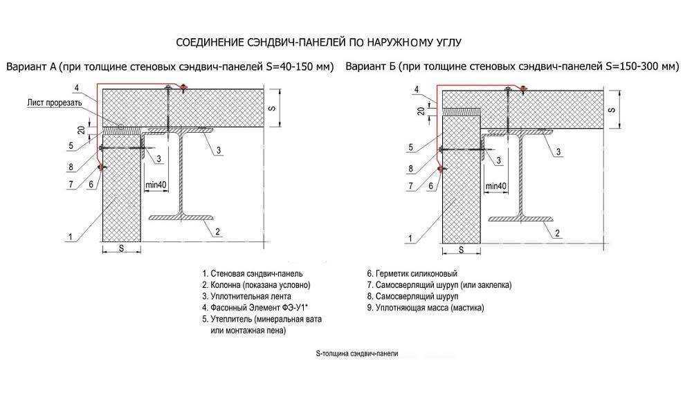 Кратко рассмотрим, как крепить панели-сэндвичи к каркасу. Сегодня насчитывают восемь вариантов узлов крепления: