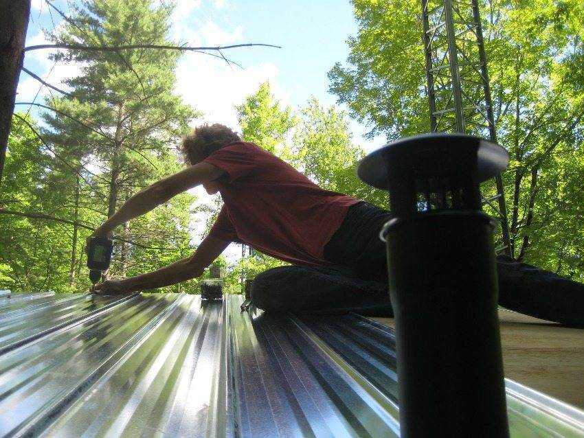 8. Монтируется кровля. Укладывается кровельный материал, например, профнастил;