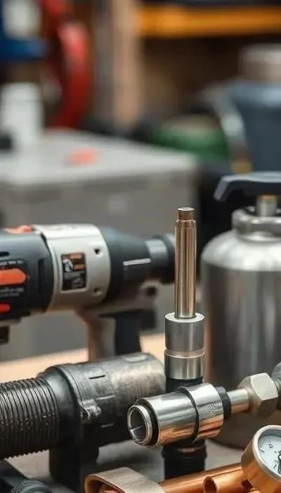 Для качественного монтажа кондиционера вам потребуется следующий набор инструментов: дрель с набором сверл (для создания отверстий под крепеж), перфоратор (для прокладки трассы в стенах), трубный резак или ножницы по металлу (для аккуратной резки медных труб), вакуумный насос (для откачки воздуха из системы), манометрический коллектор (для контроля давления фреона), сварочное оборудование (при необходимости соединения медных труб пайкой), набор гаечных ключей и отверток, изоляционные плоскогубцы, уровень, рулетка, маркер, а также электромонтажные инструменты (индикатор напряжения, пассатижи, изолента).