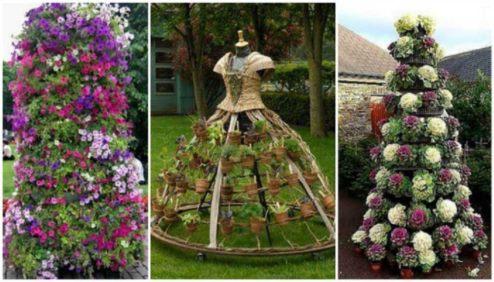 Взяв за основу один из видов клумбы и используя различные материалы, можно моделировать и создавать свои вариации вертикального цветника.