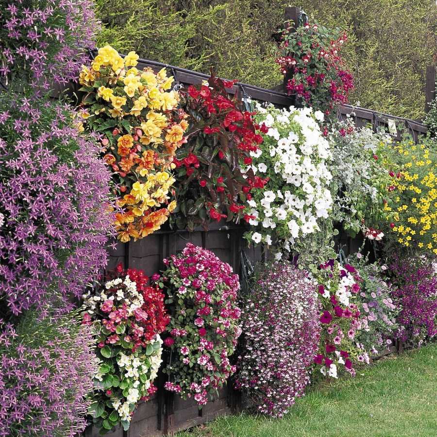 Для выращивания в вертикальной плоскости более всего подходят сильно разрастающиеся неприхотливые однолетники: настурция, лобелия, бегония, брахикома, алиссум, эшшольция, мирабилис. Первенствующее место в этом списке занимает петуния: ее тонкие стебли достаточно гибкие и длинные, благодаря чему красиво свисают вниз, образуя пышную, усыпанную цветами шапку.