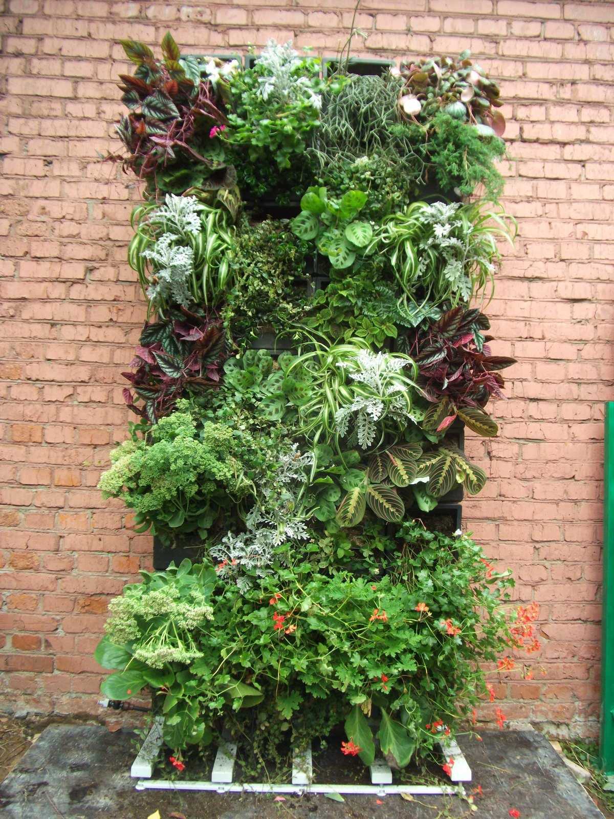 Также можно сделать модульную вертикальную клумбу. Для этого сооружаются отдельные элементы, которые могут иметь самую разную конфигурацию, а в собранном виде будут создавать настоящее панно.